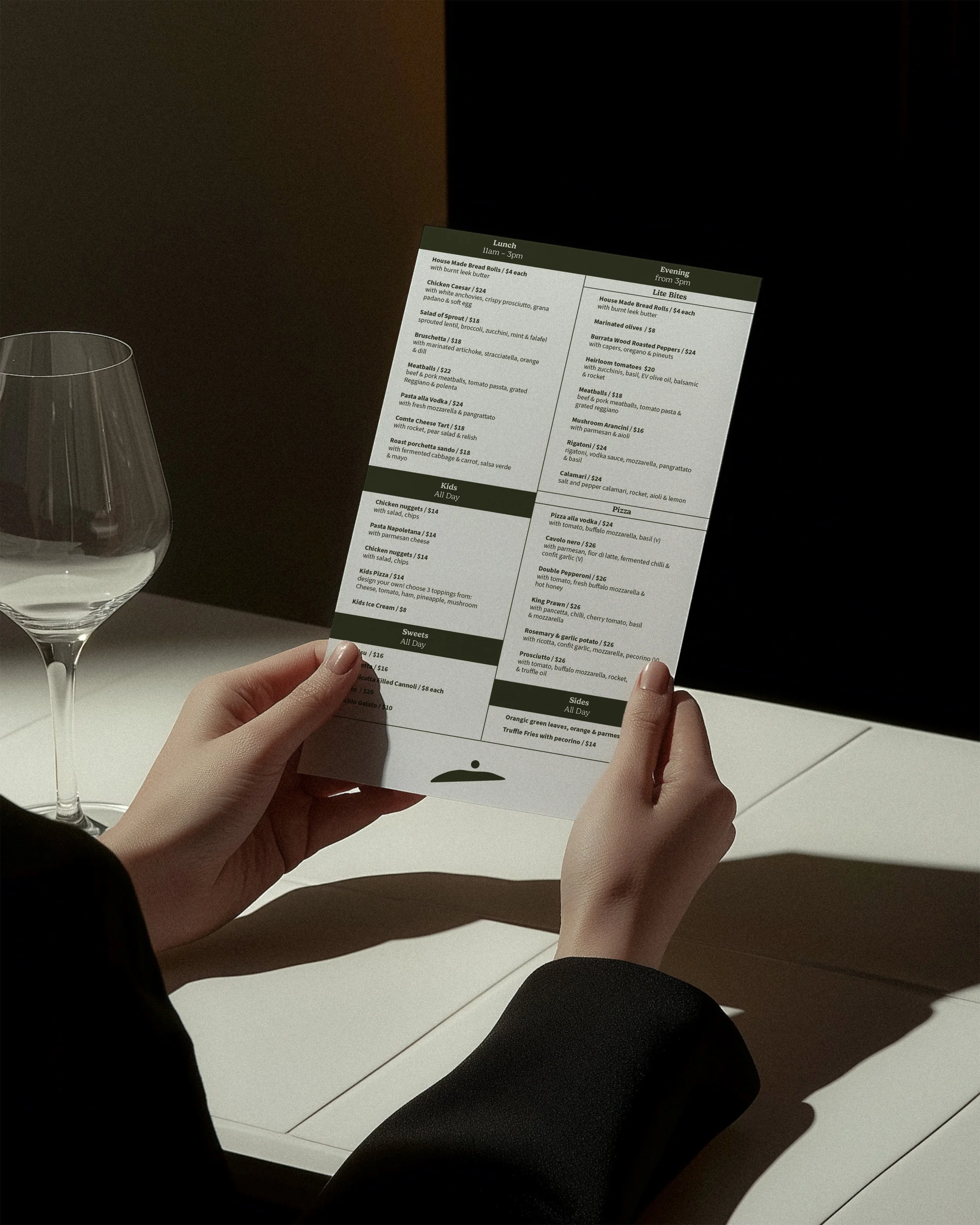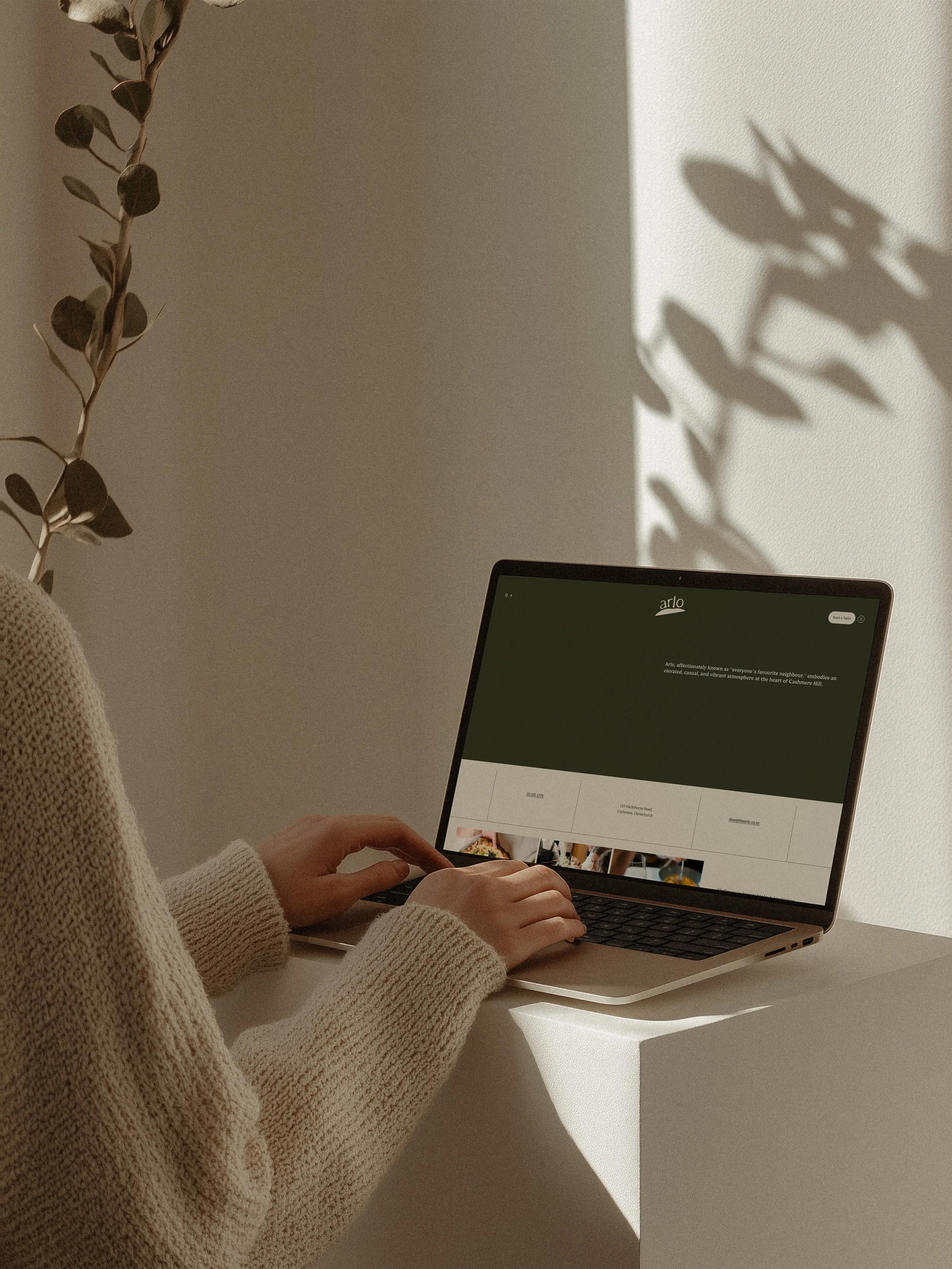 The branding captures this essence with a warm, organic feel. A rounded, handwritten typeface conveys a friendly and welcoming vibe, while the logo, perched atop a hill, symbolises Arlo's role as the community's gathering point. Though the font is handwritten, its simplicity and well-balanced spacing ensure a classic, timeless appeal that complements the restaurant's elevated yet casual atmosphere.
