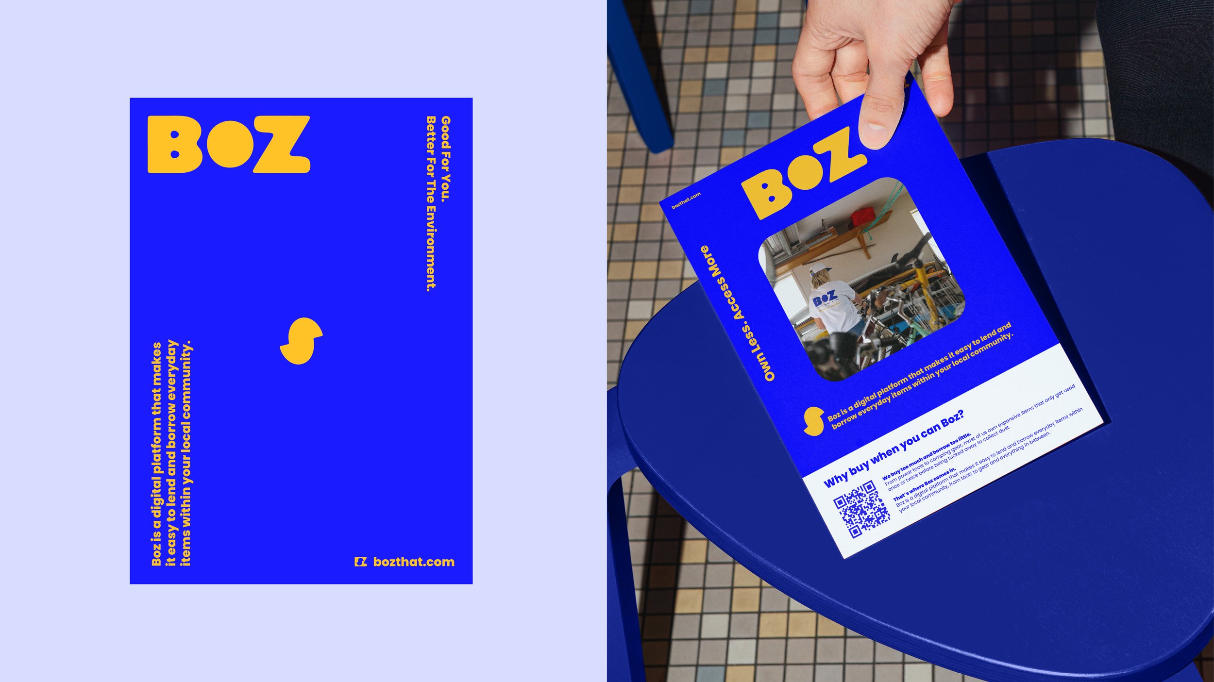 The BOZ colour palette has been carefully chosen to strike a balance between warmth and innovation. The vibrant orange and yellow tones bring an inviting, energetic and playful feel to the brand. These hues communicate friendliness, optimism and accessibility, making BOZ feel like a brand that’s here for everyone. In contrast, the bold electric blue introduces a modern, tech-forward edge. It adds a sense of reliability, intelligence and confidence, which are essential qualities for a platform built around trust and connection.