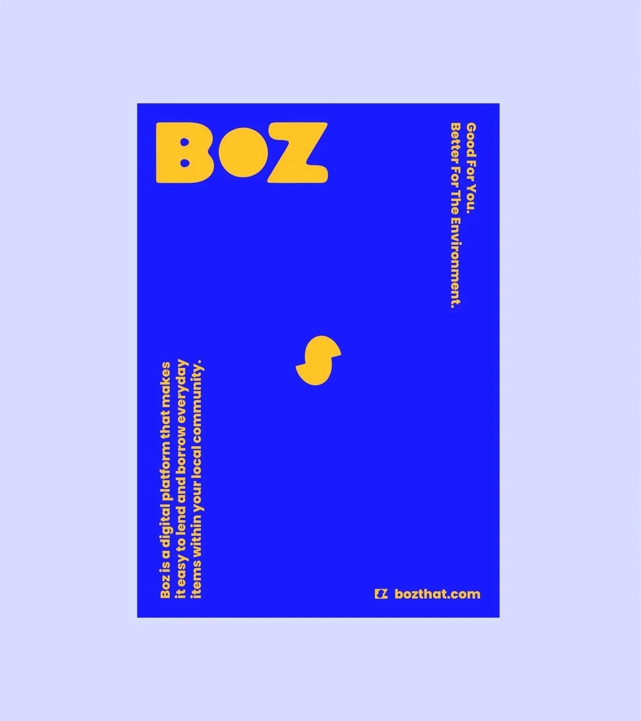 The Boz logo is a visual representation of the platform’s purpose. The B represents the borrower, the Z represents the lender, and the O in the centre symbolises the app itself, the bridge that connects them. The shape created where the B and Z are joined by the O represents that key moment of connection, where borrowing and lending meet through the BOZ platform. The logo’s soft, rounded form is intentionally playful and approachable, reflecting Boz’s friendly and inclusive personality. This approachable tone will carry through in the brand’s voice. Boz is here for everyone, accessible, and grounded in community. The logo stands apart from competitors in the market, confidently carving out a fresh, welcoming identity.