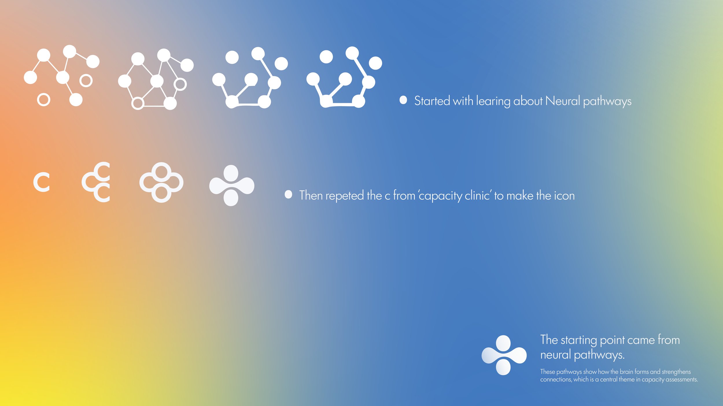 Capacity Clinic works in a specialised space where clinical expertise meets sensitive legal processes. Because of this, the brand needed an icon with a deeper purpose. It had to feel calm and reassuring for clients and families, while also presenting as professional and credible for lawyers, health providers, and the Family Court. The goal was to create a mark that reflects the science behind capacity assessments, the idea of support, and the gentle nature of this work.