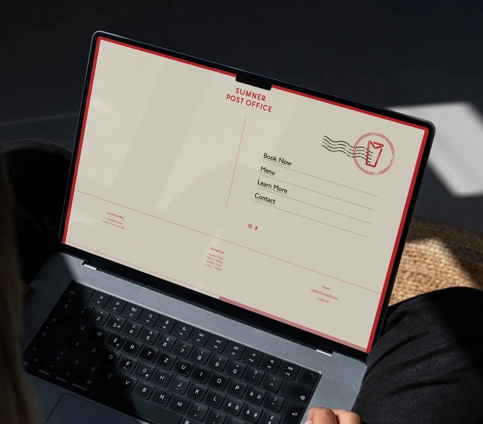 After developing the brand colours, I created a unique style for the Sumner Post Office website. The goal was to keep the design modern and clean while adding a fun twist, so the homepage was designed to look like a postcard, a nod to the restaurant’s location in the town’s historic post office.